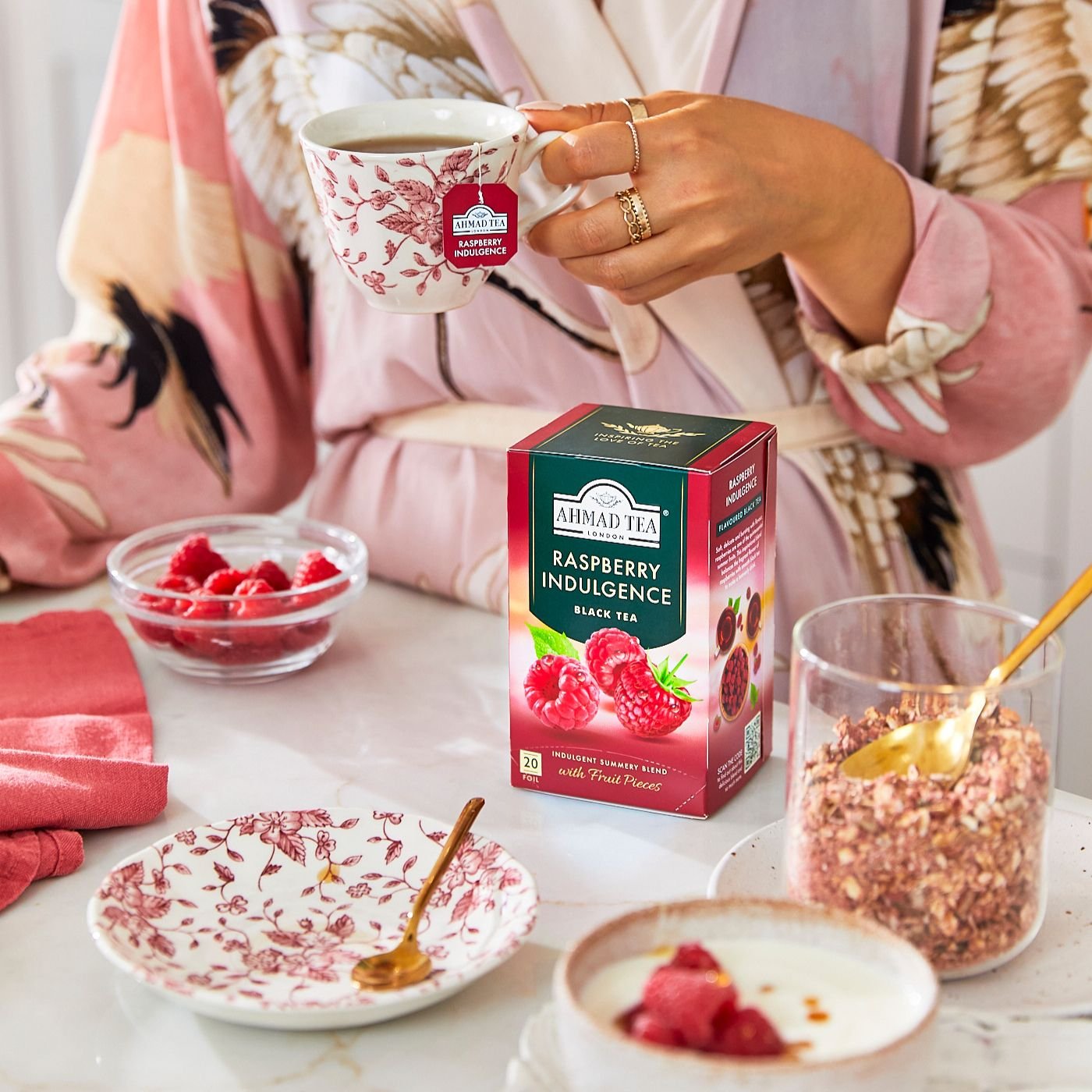 Šī tēja ir Ahmad Tea kolekcijā jau vairāk nekā 20 gadus, un ir guvusi popularitāti visā pasaulē, pateicoties tās izteiktam aveņu raksturam. Mūsu tējas meistari pievieno īstus aveņu gabaliņus un mūsu ekskluzīvo aveņu aromātu stiprai melnās tējas bāzei, veidotai no augstvērtīgām Āfrikas tējām. Tās lieliski sader ar saldi skābeno aveņu garšu, radot gardu un atsvaidzinošu dzērienu.