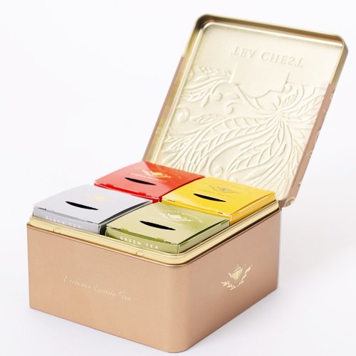 Чайная шкатулка «Chest Four» содержит квартет чаев в изысканной золотой коробке, которая будет еще долго служить после того, как чай закончится. Включает в себя Английский завтрак, Эрл Грей, Дарджилинг и Английский чай № 1.Одноразовые пакетики с ниткой, в индивидуальной фольгированной упаковке, полностью сохраняет вкус и аромат чая.Настаивать в течении 3-5 минут.